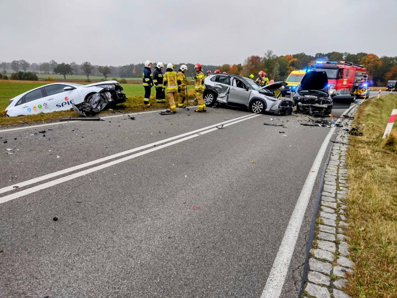 Ze wstępnych ustaleń policjantów wynika, że 64-letnia kierująca Toyotą na łuku drogi straciła panowanie nad autem i uderzyła w jadącą z przeciwka Kia. Odbiła się od tego pojazdu i uderzyła jeszcze w jadący za Kia samochód Renault.