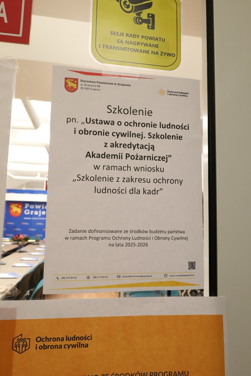 12 grudnia br. w sali konferencyjnej Starostwa Powiatowego w Grajewie odbyło się szkolenie pn. „Ustawa o ochronie ludności i obronie cywilnej. Szkolenie z akredytacją Akademii Pożarniczej” w ramach wniosku „Szkolenie z zakresu ochrony ludności dla kadr”, w którym udział wzięli pracownicy urzędu oraz przedstawiciele jednostek organizacyjnych.