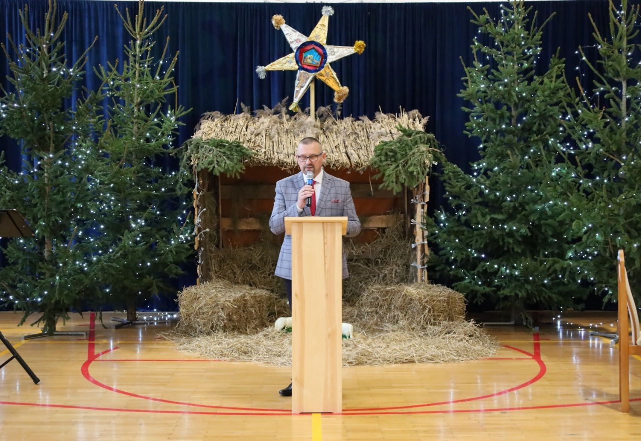Uroczystość rozpoczęła się serdecznym powitaniem przez Starostę Grajewskiego Waldemara Remfelda, po którym razem z Przewodniczącym Rady Powiatu Grajewskiego Grzegorzem Gardockim złożyli zebranym życzenia świąteczne. Następnie na scenie wystąpili uczniowie szkoły, prezentując piękne i pełne wzruszeń przedstawienie jasełkowe, które wprowadziło wszystkich w prawdziwie świąteczny nastrój. Kolejnym punktem programu było wspólne śpiewanie kolęd – zarówno tych bardziej znanych, jak i nieco rzadziej wykonywanych.