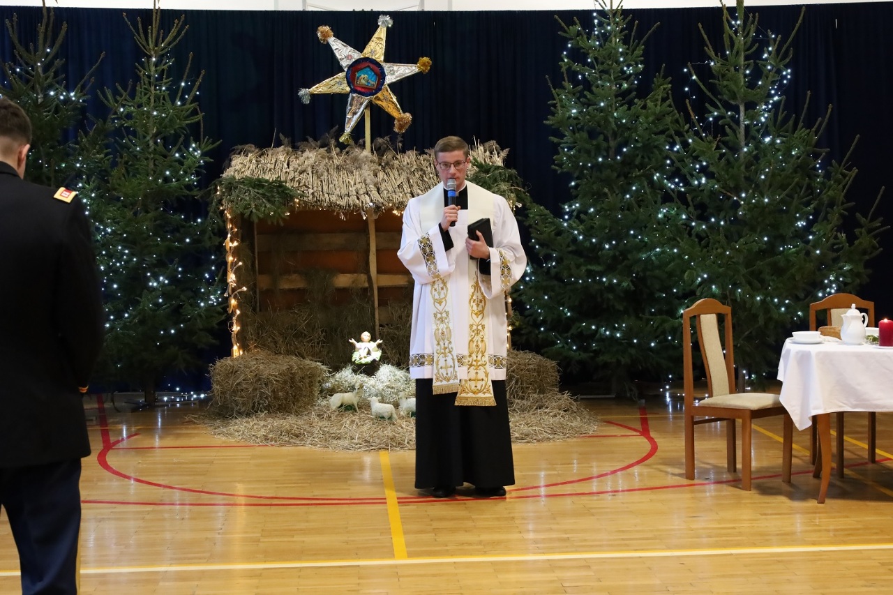 Zgodnie z piękną tradycją ks. Szymon Rydel z parafii pw. Matki Boskiej Nieustającej Pomocy w Grajewie poprowadził wspólną modlitwę, odczytał fragment Ewangelii oraz poświęcił opłatki. Chwilę później wszyscy uczestnicy, łamiąc się nimi, składali sobie serdeczne życzenia ciepłych, spokojnych i radosnych Świąt Bożego Narodzenia.