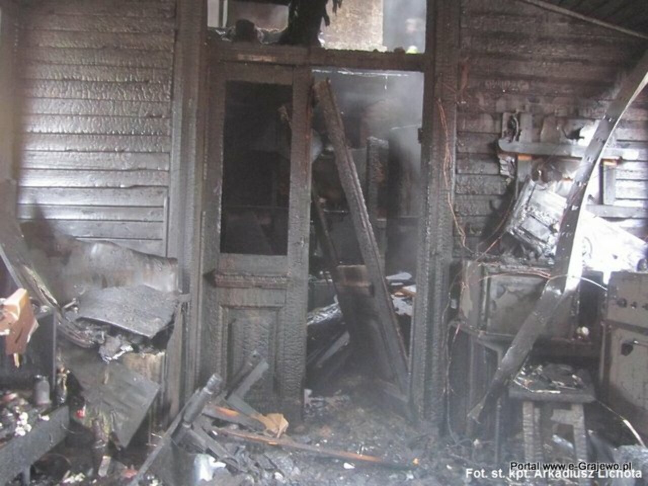 Po przybyciu na miejsce zdarzenia i dokonaniu rozpoznania wstępnego ustalono, że pożarem objęte są pomieszczenia w części budynku należące do jednej z rodzin oraz poddasze na całej powierzchni drewnianego domu mieszkalnego. W chwili powstania pożaru w budynku przebywały 2 rodziny