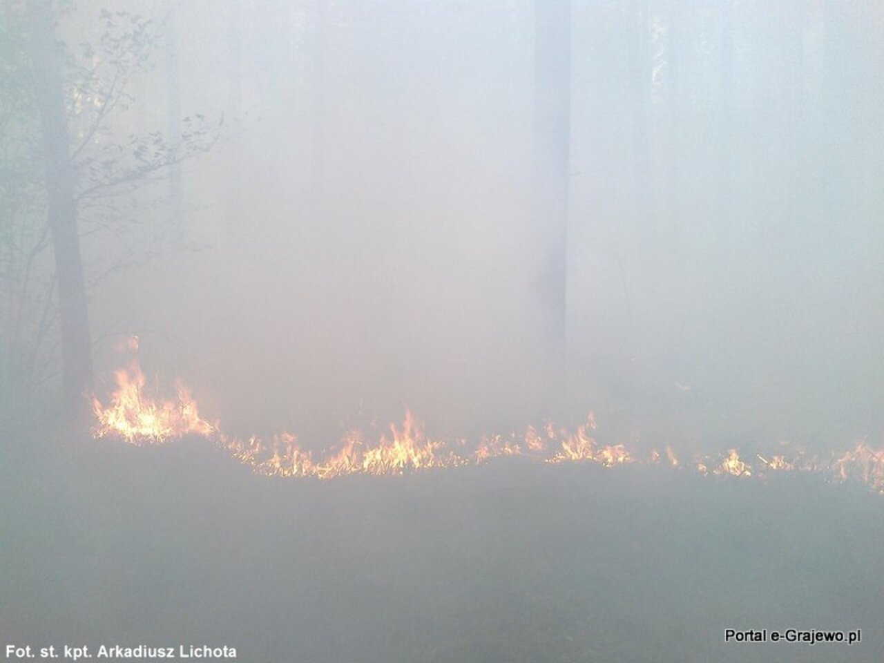 9 czerwca br. przed godz. 18.00 dyżurny Komendy Powiatowej Państwowej Straży Pożarnej w Grajewie otrzymał zgłoszenie o pożarze lasu w okolicach miejscowości Sojczyn Borowy, gm. Grajewo.