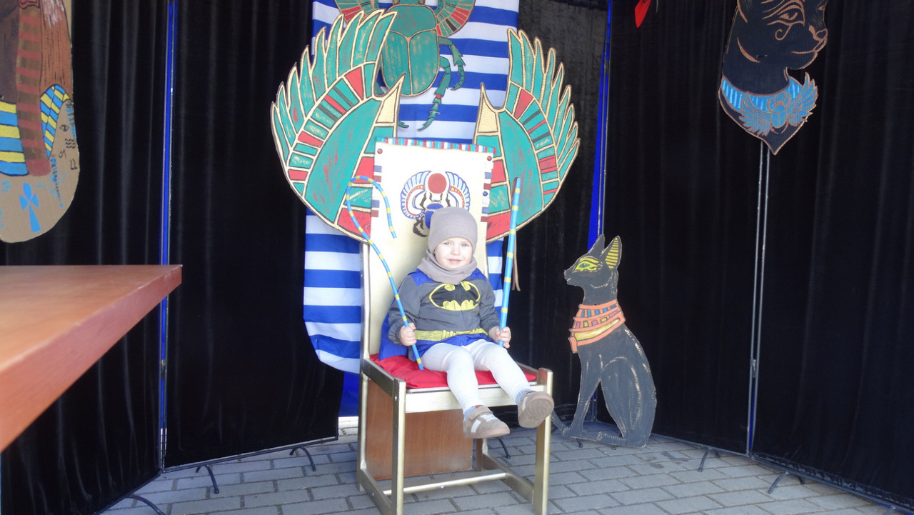 Porywisty wiatr sprawił, że musieliśmy wcześniej skończyć warsztaty tematyczne, podczas których dzieci tworzyły m.in.: egipskie nakrycia głowy nemes, czarne koty – symbol starożytnego Egiptu, wielbłądy, a także własnoręcznie wykonywały egipską biżuterię. W niedługim czasie poinformujemy o powtórzeniu warsztatów tematycznych.