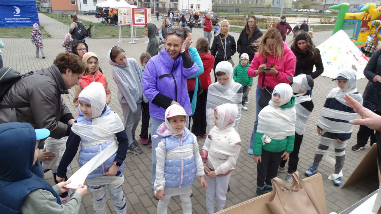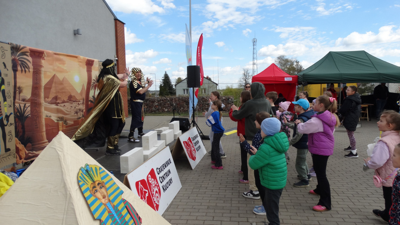 Ogromnym zainteresowaniem cieszyły się animacje i zabawy prowadzone przez animatorów, które porwały do wspólnej aktywności całe rodziny. Dodatkowo na uczestników czekały: malowanie egipskiej piramidy, gry i konkursy oraz spotkanie z naszą niezastąpioną Krówką Matyldą .