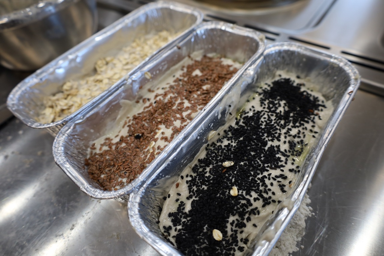 Kolejnym etapem było przygotowanie ciasta – od mieszania zakwasu z wodą i mąką, poprzez doprawienie go solą, aż po formowanie w foremkach i wzbogacanie różnymi nasionami. Brzmi krótko, ale proces ten wymagał nie tylko cierpliwości i skupienia, lecz także siły fizycznej, ponieważ jest to trudna i długa praca. Był to najbardziej ekscytujący etap warsztatów, w trakcie którego kuchnia tętniła życiem, radością, śmiechem i wspólną zabawą.