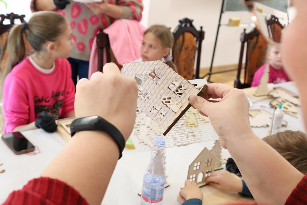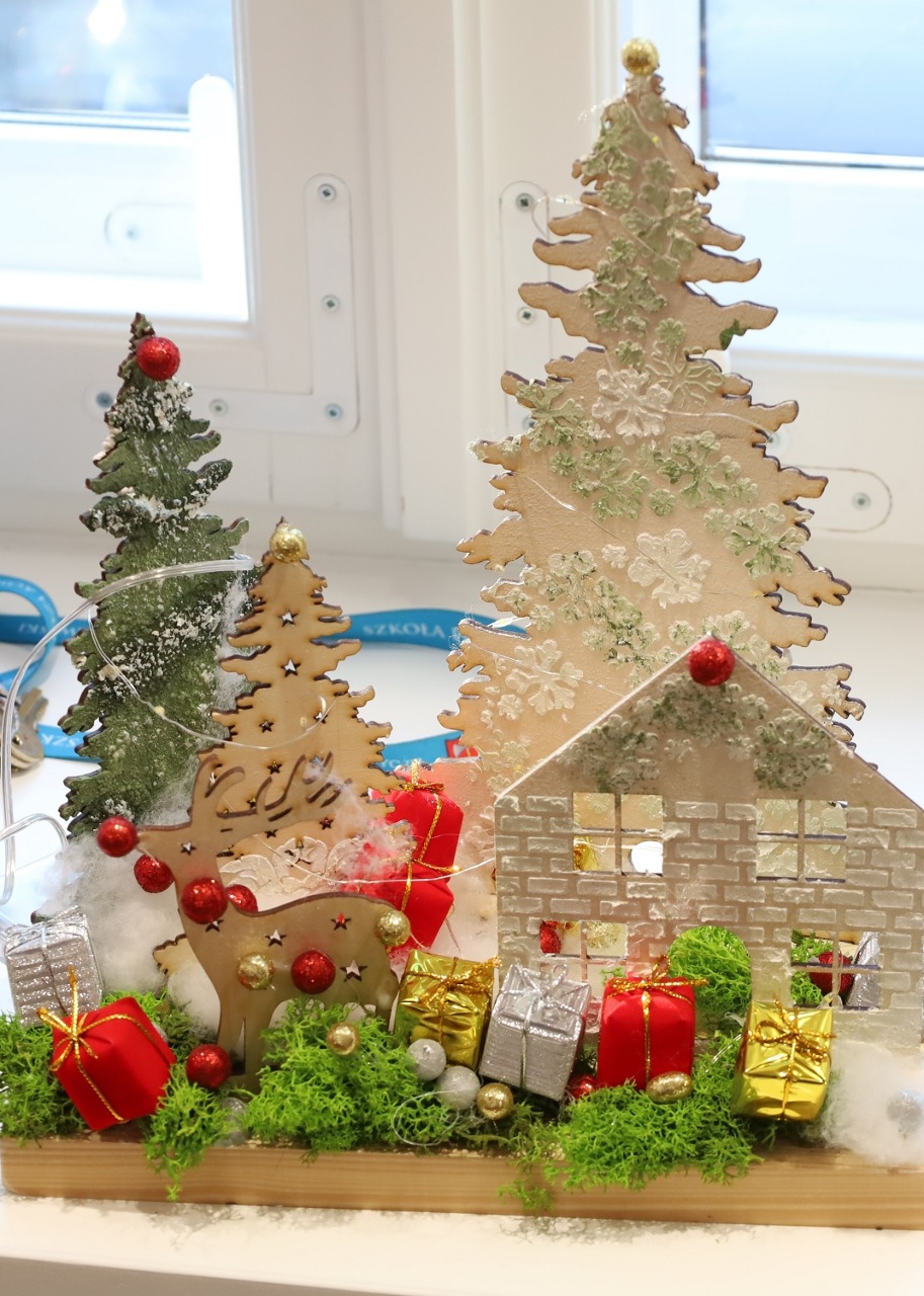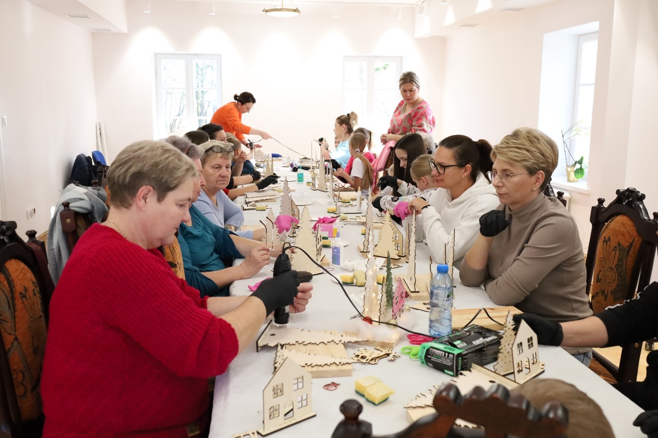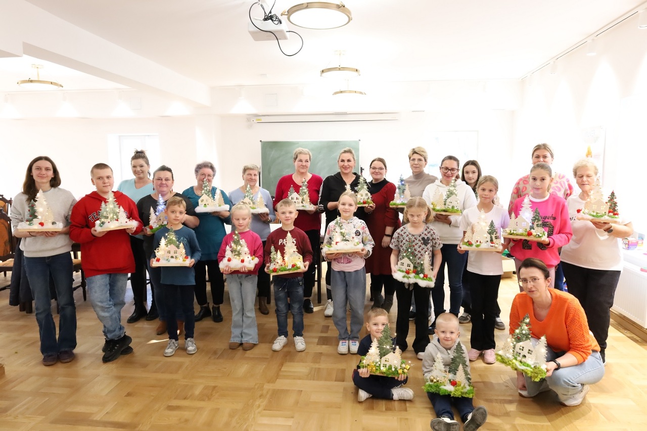 Uczestnicy mieli przed sobą sporo twórczych zadań: od gruntowania elementów, które chcą ozdobić, nakładania masy strukturalnej, malowania na różne odcienie zieleni , aż po uważne suszenie każdej warstw. Kulminacyjnym etapem było oczywiście składanie i dekorowanie stroików – proces, który wzbudził najwięcej radości, zwłaszcza wśród najmłodszych. To właśnie wtedy dzieci mogły puścić wodze fantazji, sięgając po miękki mech, włókninę imitującą śnieg, błyszczące bombki, kolorowe koraliki - całą paletę drobnych ozdób. Całość dopełniały nastrojowe lampeczki LED, które sprawiły, że stroiki dosłownie rozbłysły świątecznym urokiem.