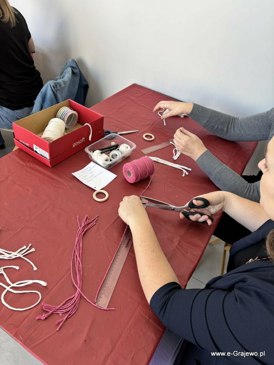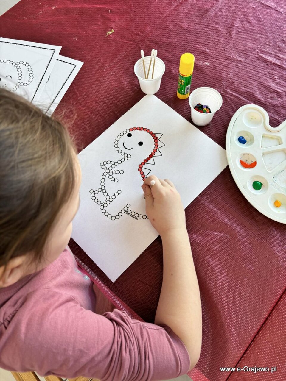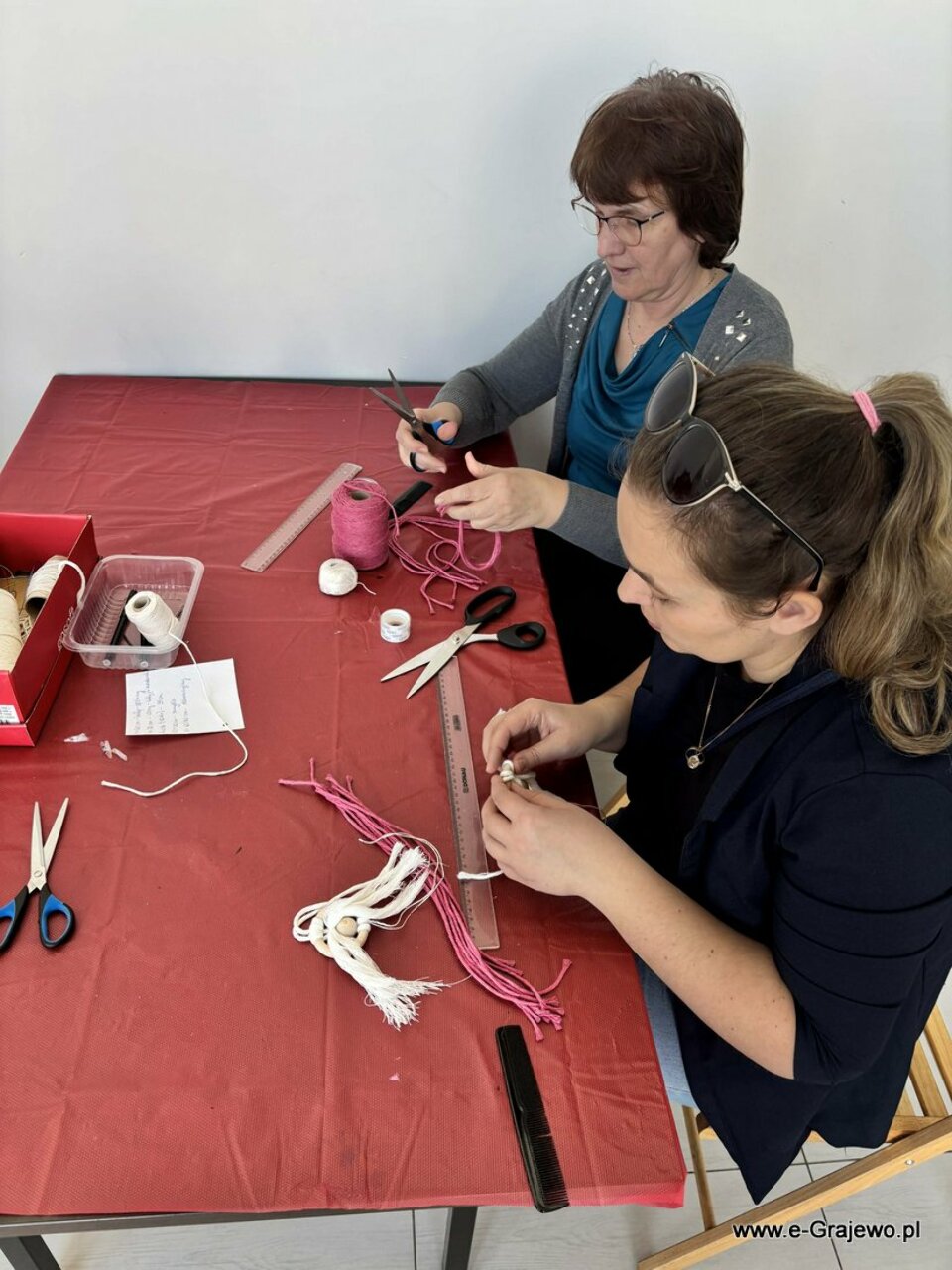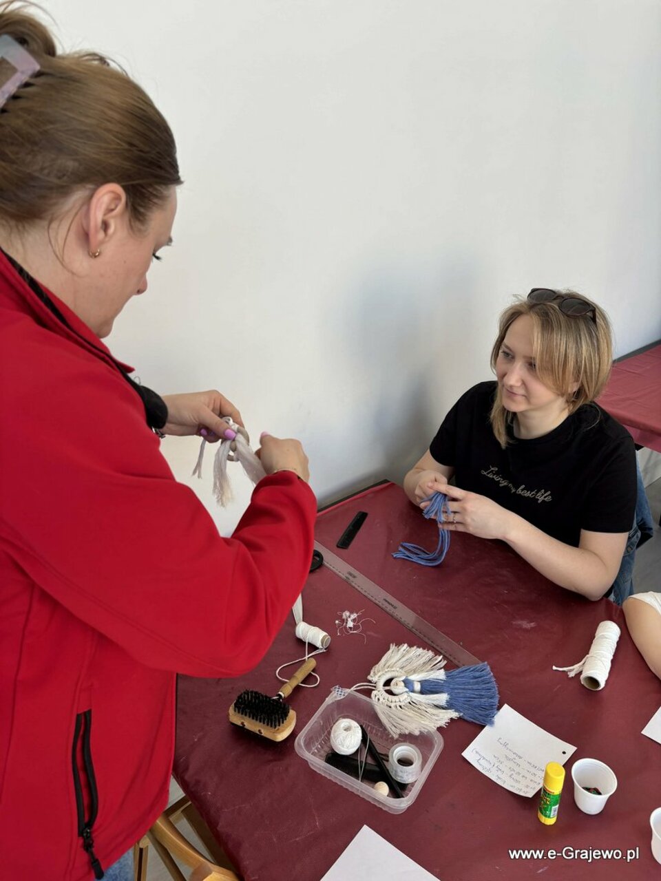 Na dzisiejszym spotkaniu rodzice tworzyli aniołki z makramy. Wszyscy poradzili sobie znakomicie, aniołki wyszły piękne, każdy z nich był inny i wyjątkowy. W tym czasie dzieci zajęły się kropkowaniem obrazków farbami i zdobieniem ich cekinami. Po zakończeniu malowania najmłodsi zajęli się zabawą klockami, co umiliło im czas!