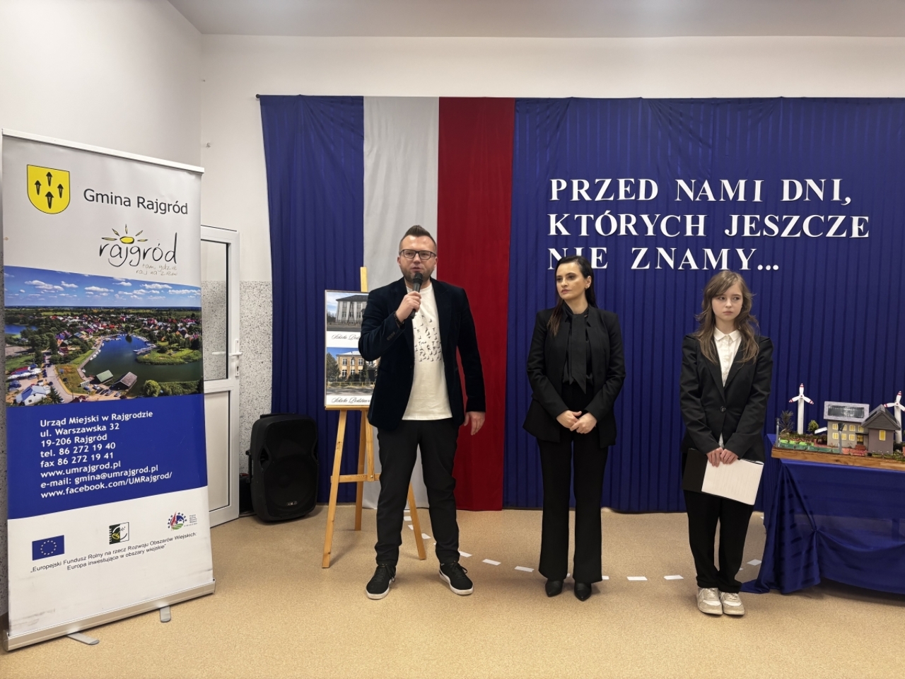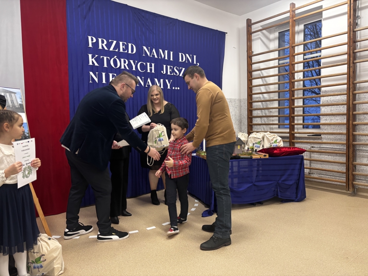 Nie zabrakło również części artystycznej – występów muzycznych i recytacji wierszy, w tym tekstów powstałych w ramach szkolnego konkursu literackiego: „List do przyszłych uczniów – jak dbamy o energię w naszej szkole”. Tego dnia odbyło się również wręczenie przez Pana Burmistrza oraz Panią Dyrektor nagród w konkursie "Szkoła z energią", oba te konkursy były realizowane jako jedne z działań związanych z odnawialnymi źródłami energii i ochroną środowiska w naszej szkole.