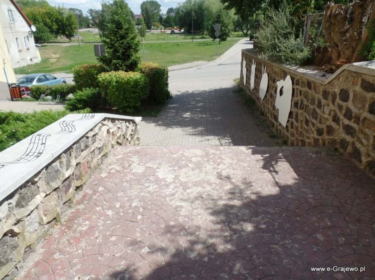 Schody przy budynku Grajewskiego Centrum Kultury zostaną wyremontowane. W projekcie przewidziano wykonanie nowych biegów schodowych, podjazdów dla wózków dziecięcych, poręczy oraz wymianę kostki na spocznikach schodów.