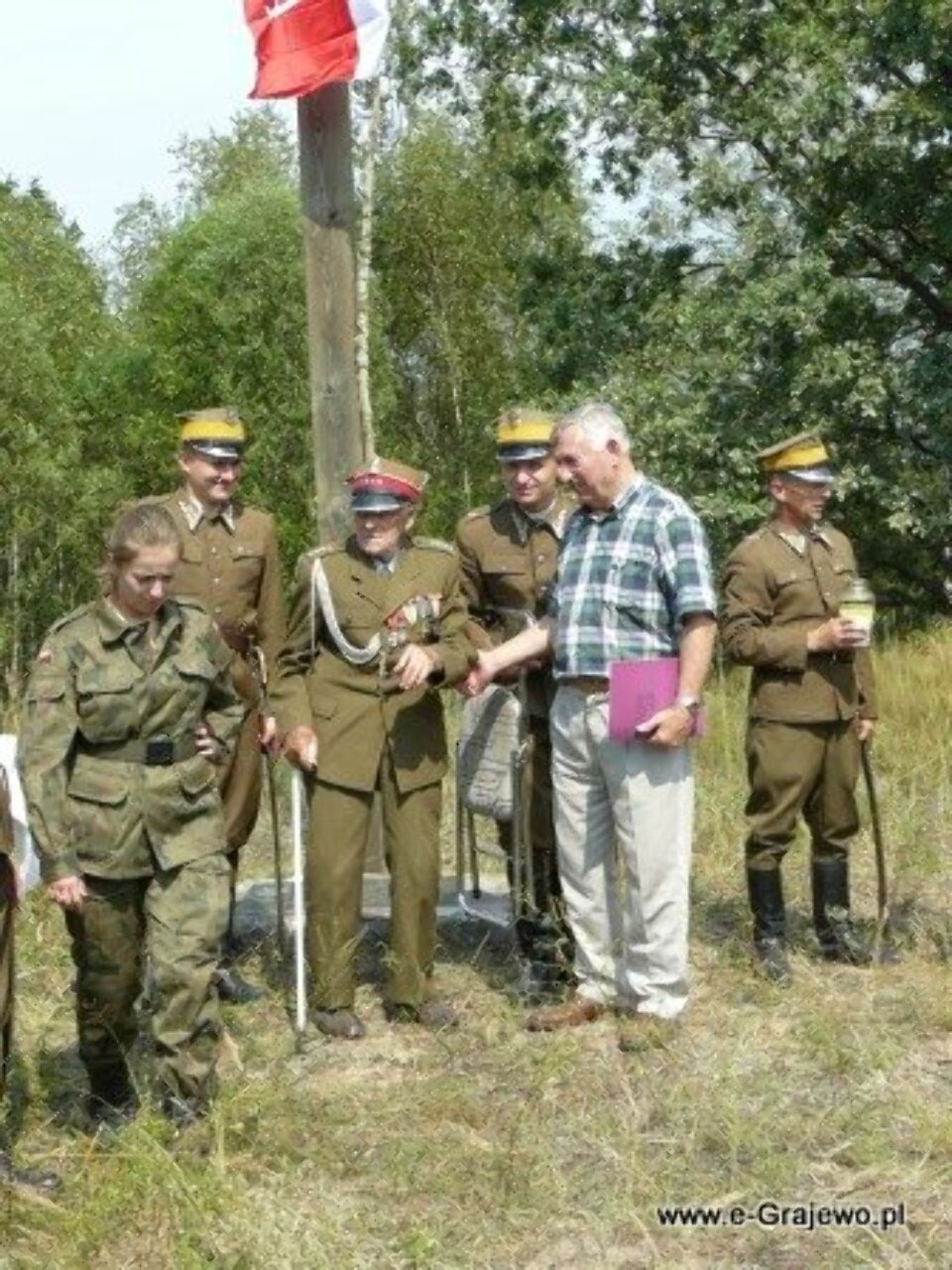 "Tamten dzień był podobny do dzisiejszego- wspomina kpt. w st. spocz. Sierakowski Leon ps. Siergiej, uczestnik bitwy na Grzędach z Niemcami 8-9 wrzesnia 1944 r.- piękna, słoneczna pogoda jak dzisiaj, nic nie zapowiadało tragedii". Rozgląda się wokół "miejsce to samo, a jakby inne". Czas i matka natura zatarły ślady pola bitwy z tamtego dnia, tylko krzyż, biało-czerwona flaga, tablica i zapalony znicz mówią o tajemnicy tego miejsca. Przywołują wspomnienia tamtych dni, dowódcy, kolegów, których widział ostatni raz. Jego wyraz twarzy, łzy w oczach i długa chwila milczenia pozwala nam zrozumieć Jego stan. Teraz jesteśmy pewni jak wielkim pragnieniem żyjących uczestników tej bitwy było znależć się po 70 latach na tym przesiąkniętym krwią poległych kolegów miejscu.
