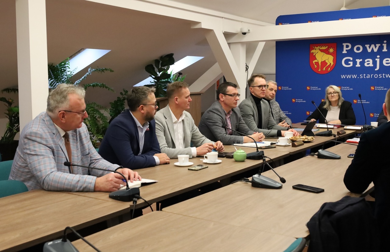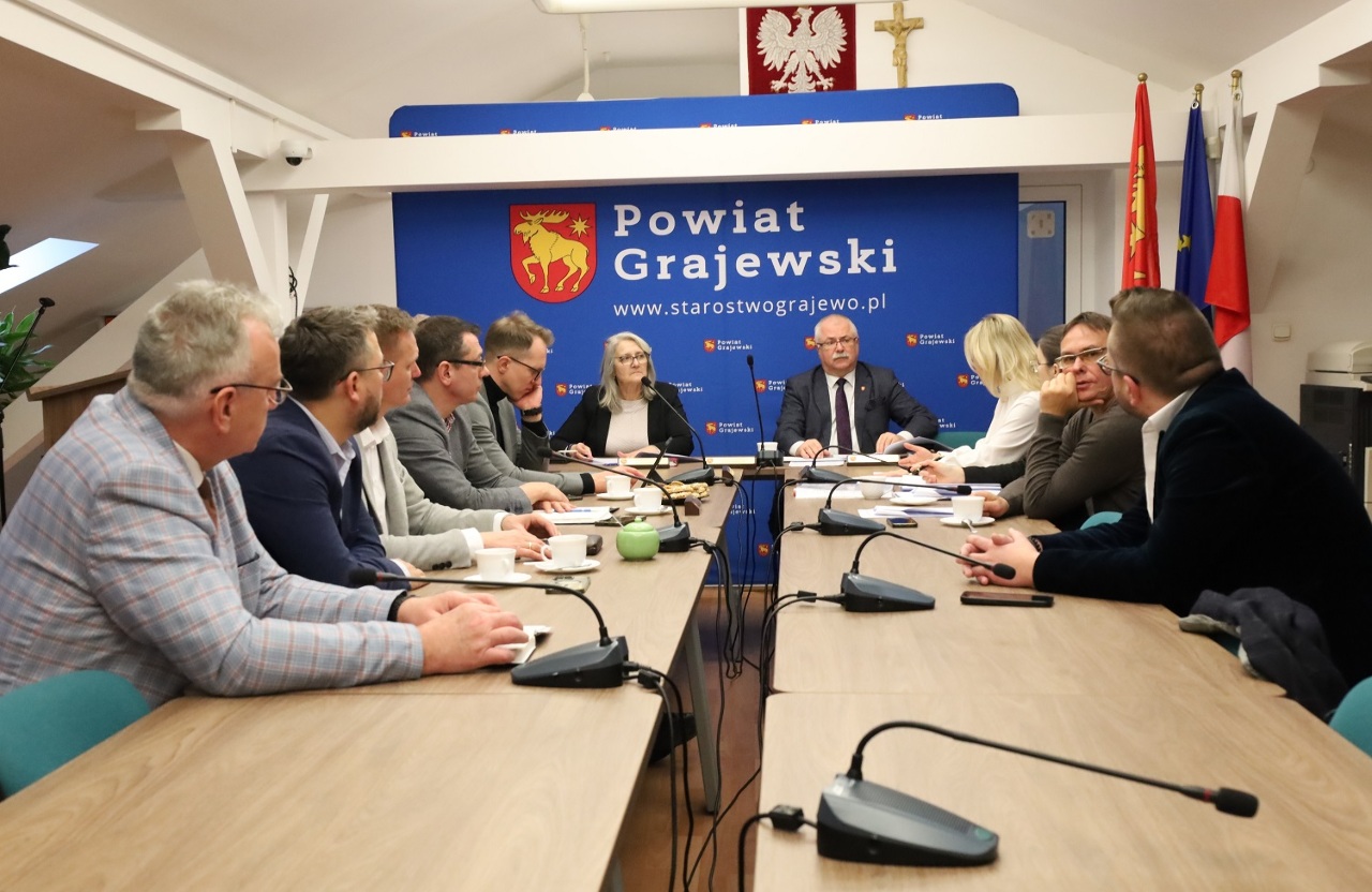 20 stycznia 2026 r., w sali konferencyjnej Starostwa Powiatowego w Grajewie odbyło się spotkanie organizacyjne przedstawicieli samorządów z terenu powiatu grajewskiego, któremu przewodniczyli Starosta Grajewski Waldemar Remfeld oraz Wicestarosta Grajewski Maria Gwiazdowska.