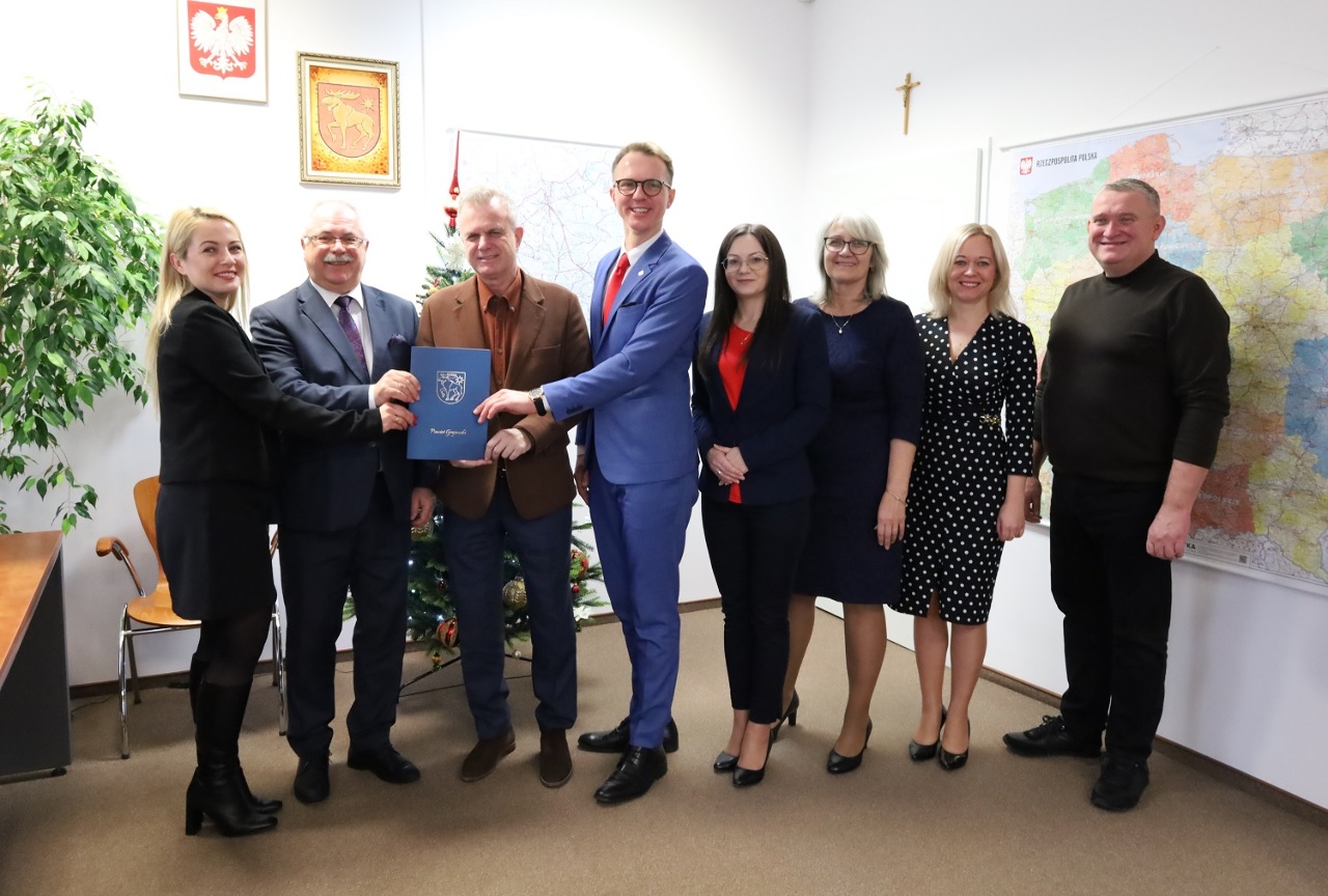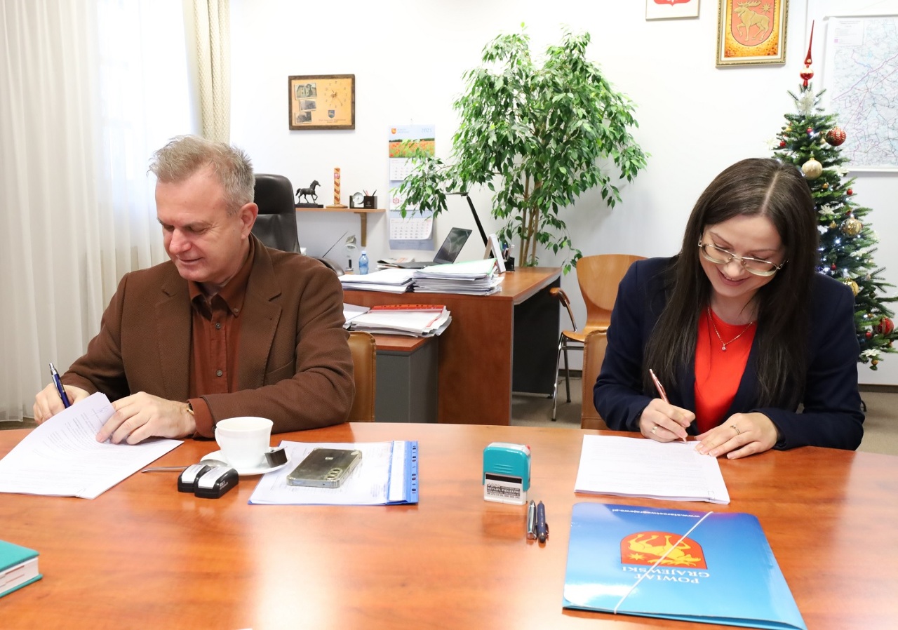 W dniu 15 grudnia 2025 r. w gabinecie Starosty Grajewskiego odbyło się podpisanie umowy na realizację zadania pn. „Rozbudowa drogi powiatowej nr 1811B na odcinku Guty – Bzury”.