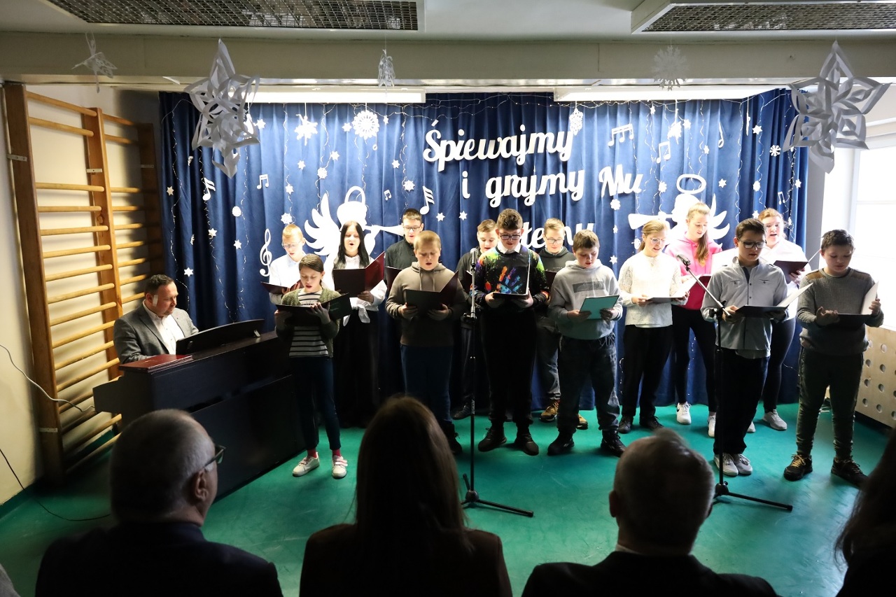 Wydarzenie stało się również okazją do wysłuchania krótkiego koncertu kolęd w wykonaniu uczniów szkoły.