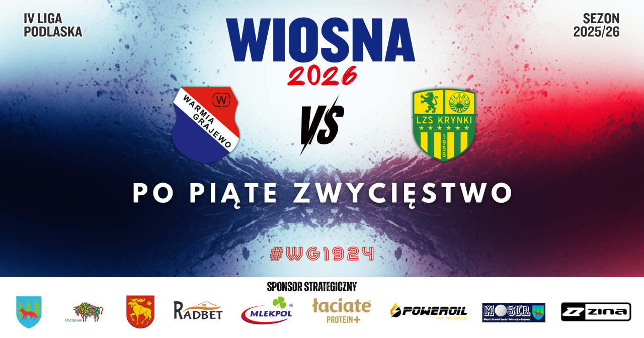 W 23. kolejce rozgrywek IV ligi podlaskiej piłkarze WARMII zmierzą się w sobotę 11 kwietnia o godzinie 16:00 na Stadionie Miejskim im. Witolda Terleckiego z beniaminkiem rozgrywek – zespołem LZS Krynki. W przypadku wygranej WARMII, będzie to już piąte zwycięstwo w pięciu ligowych meczach wiosną!