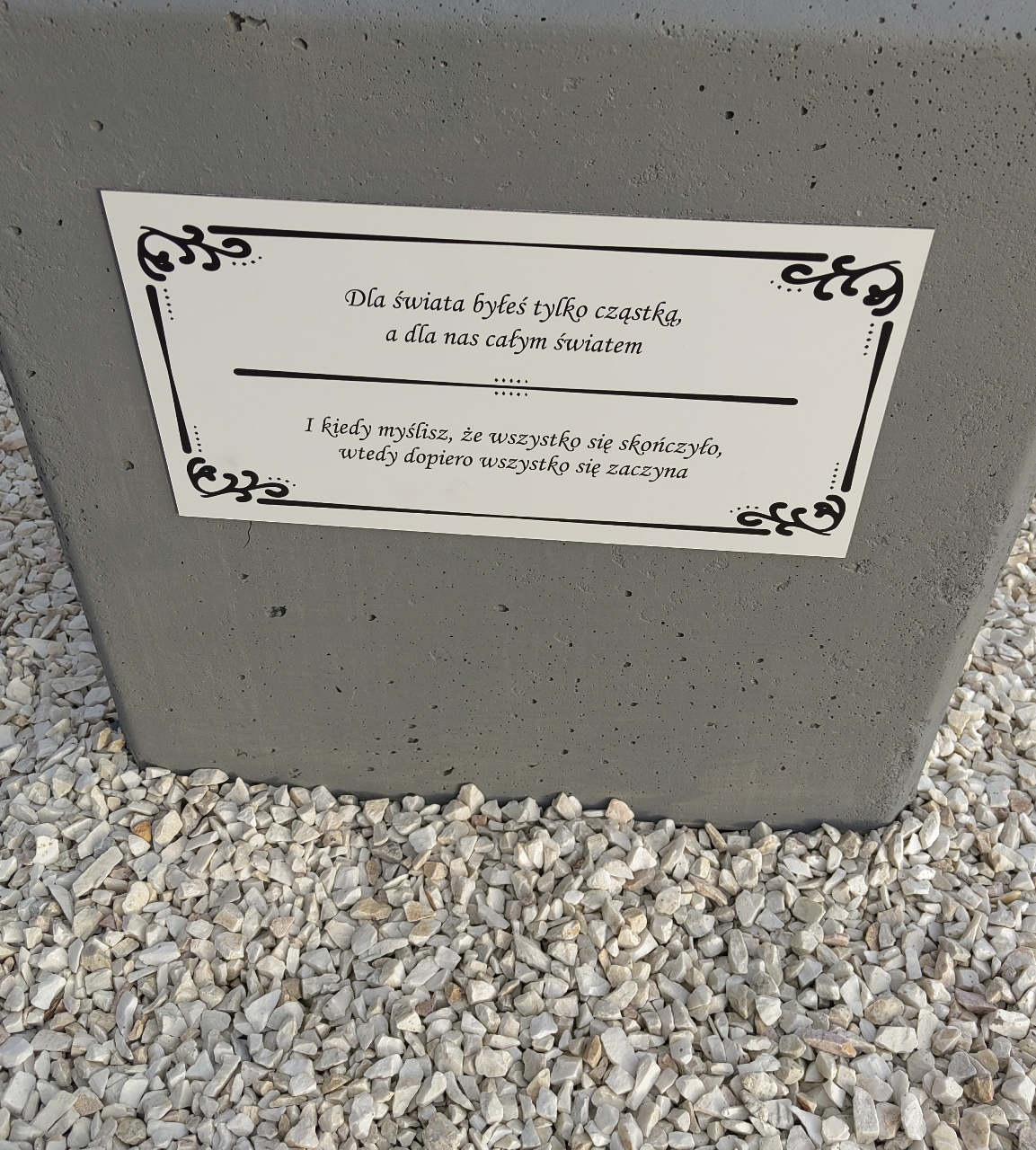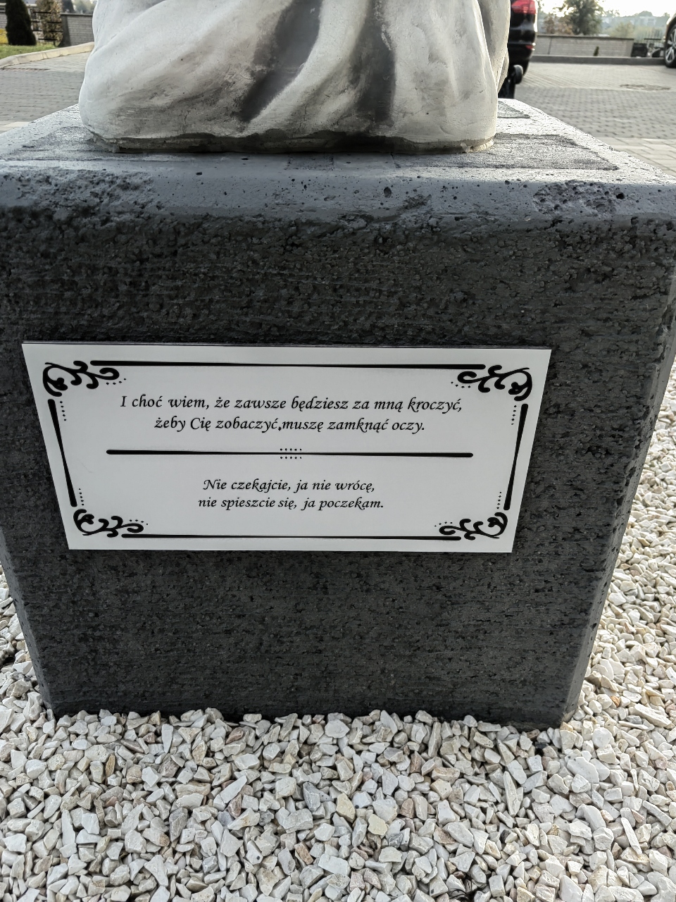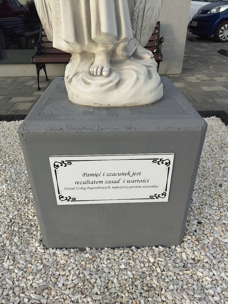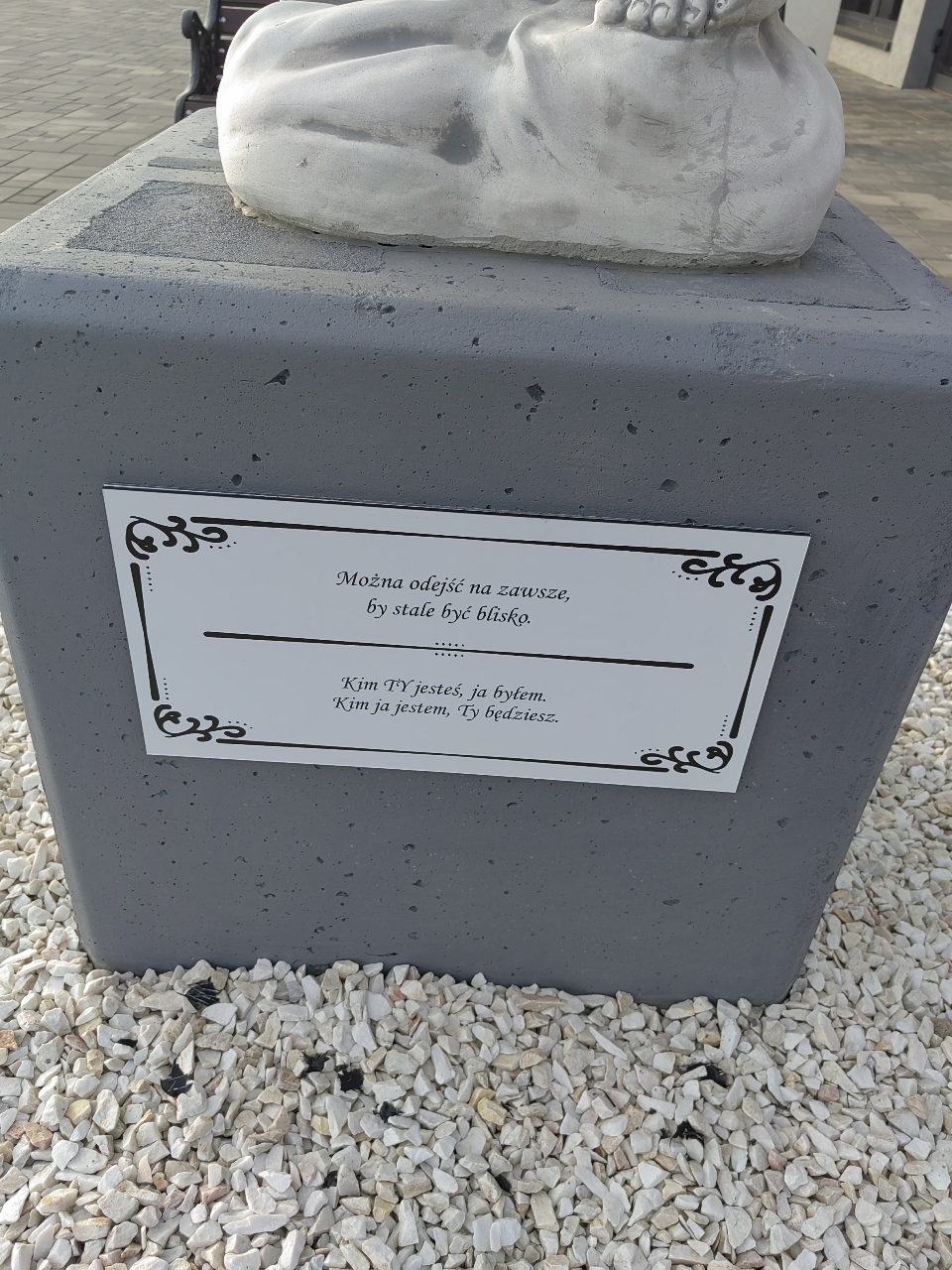 Dziękujemy za tak liczny odzew i zainteresowanie. Łącznie zaproponowaliście Państwo ponad sto różnych sentencji. Nie było możliwości, aby wszystkie zamieścić, a wyjątkowo ciężko było wybrać te kilka. Teraz figura anioła jest podświetlona, a Wasze sentencje zamieszczone są na jej postumencie.