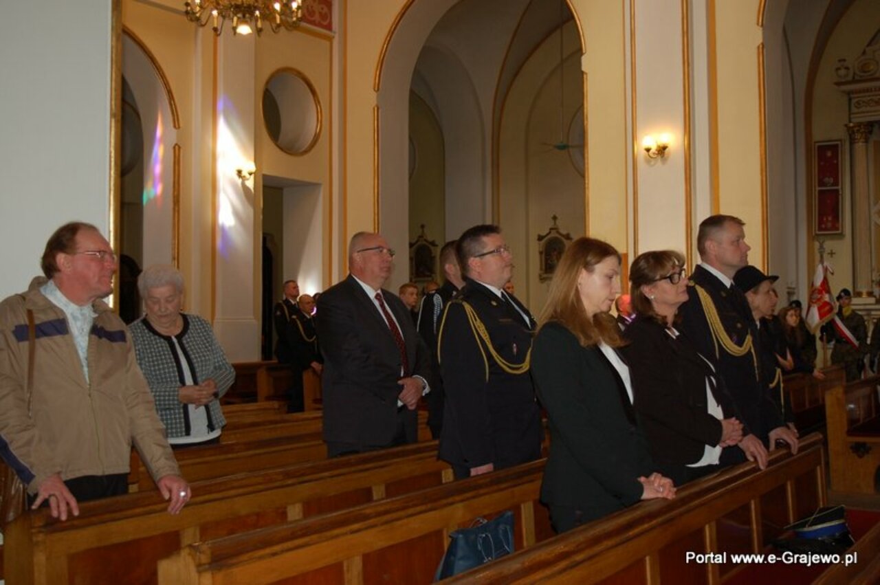 4 maja br. o godzinie 10.30 uroczystą Mszą św. w kościele pw. Trójcy Przenajświętszej w Grajewie rozpoczęły się Powiatowe Obchody Dnia Strażaka. Po nabożeństwie kolumna marszowa udała się na plac przed Urzędem Miasta Grajewo na oficjalne obchody strażackiego święta.