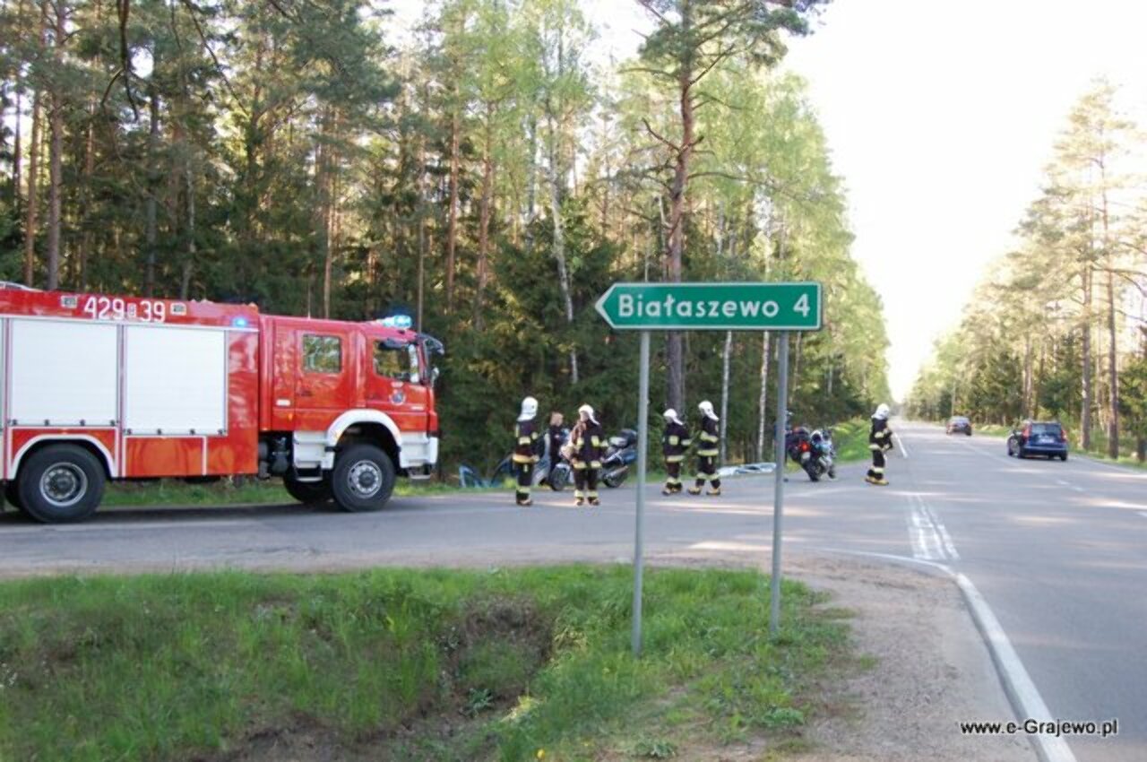 Jedną osobę Pogotowie Ratunkowe odwiozło do grajewskiej placówki medycznej. Policjanci na miejscu sprawdzali dokładne przyczyny.
