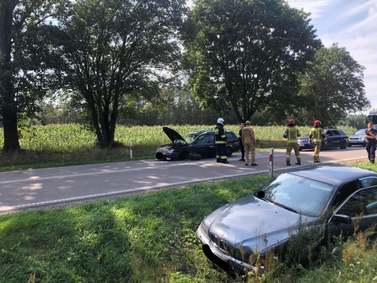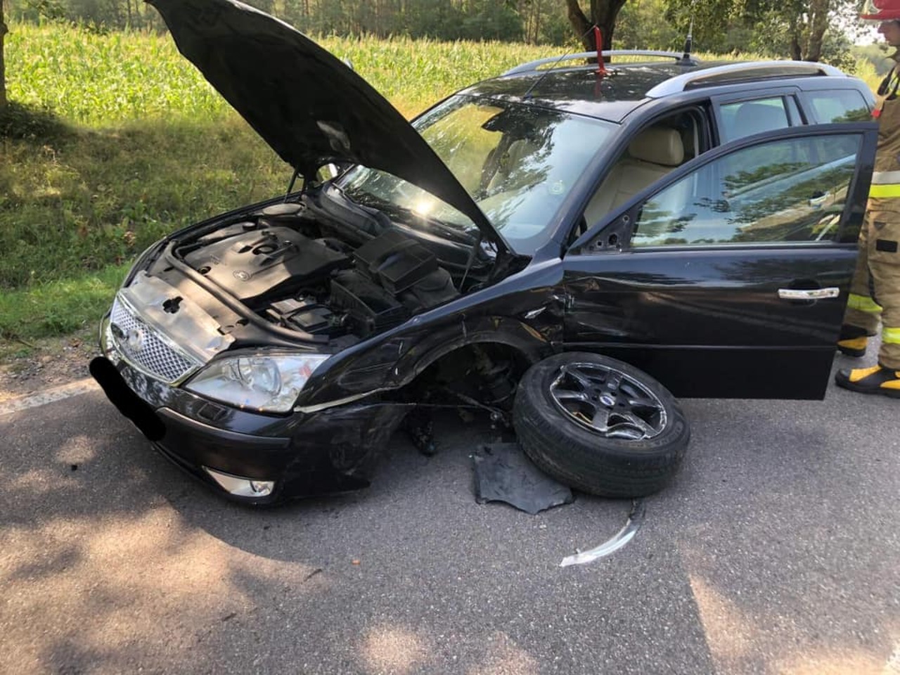 W środę 16.08.23 strażacy otrzymali zgłoszenie o zderzeniu dwóch samochodów osobowych na drodze DK65 (Mońki - Knyszyn) na wysokości miejscowości Czechowizna.