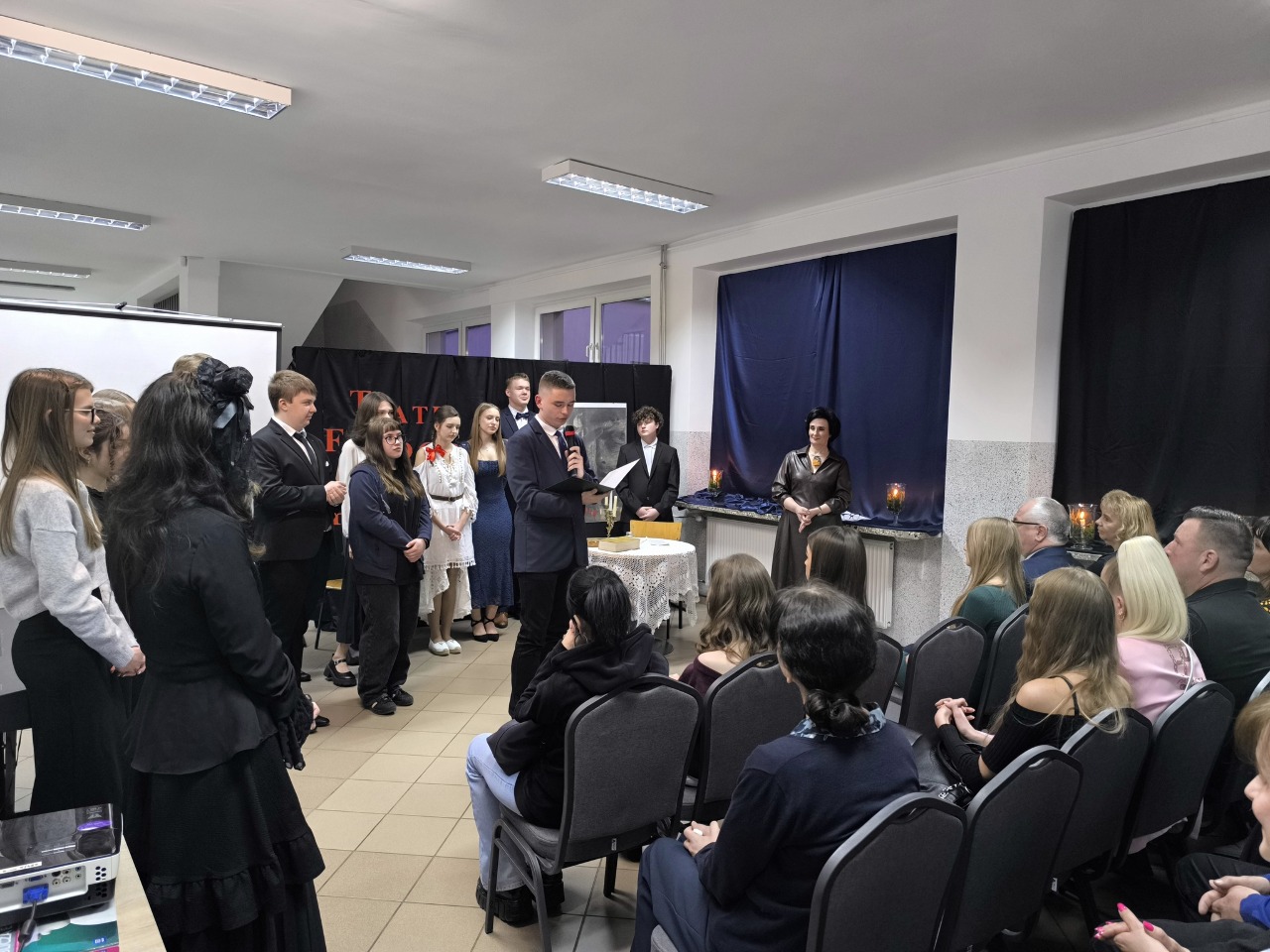 Dnia 24 marca 2026 r. w I Liceum Ogólnokształcące im. Mikołaja Kopernika w Grajewie odbył się wernisaż wystawy „Teatr Fotografii i Plakatu”, przygotowany przez uczniów klasy IIIC pod czujnym okiem nauczycielki języka polskiego Pani Beaty Lachowicz, w którym uczestniczył Starosta Grajewski Waldemar Remfeld.