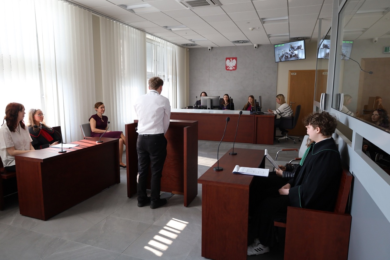 Jednym z najciekawszych punktów wizyty była symulacja rozprawy sądowej. Uczniowie wcielili się w role sędziów, adwokatów, obrońców, świadków oraz oskarżonych i przeprowadzili wymyślony przez siebie proces. Dzięki temu mogli w praktyce zobaczyć, jak wygląda przebieg rozprawy oraz jakie zadania mają poszczególne osoby uczestniczące w postępowaniu.