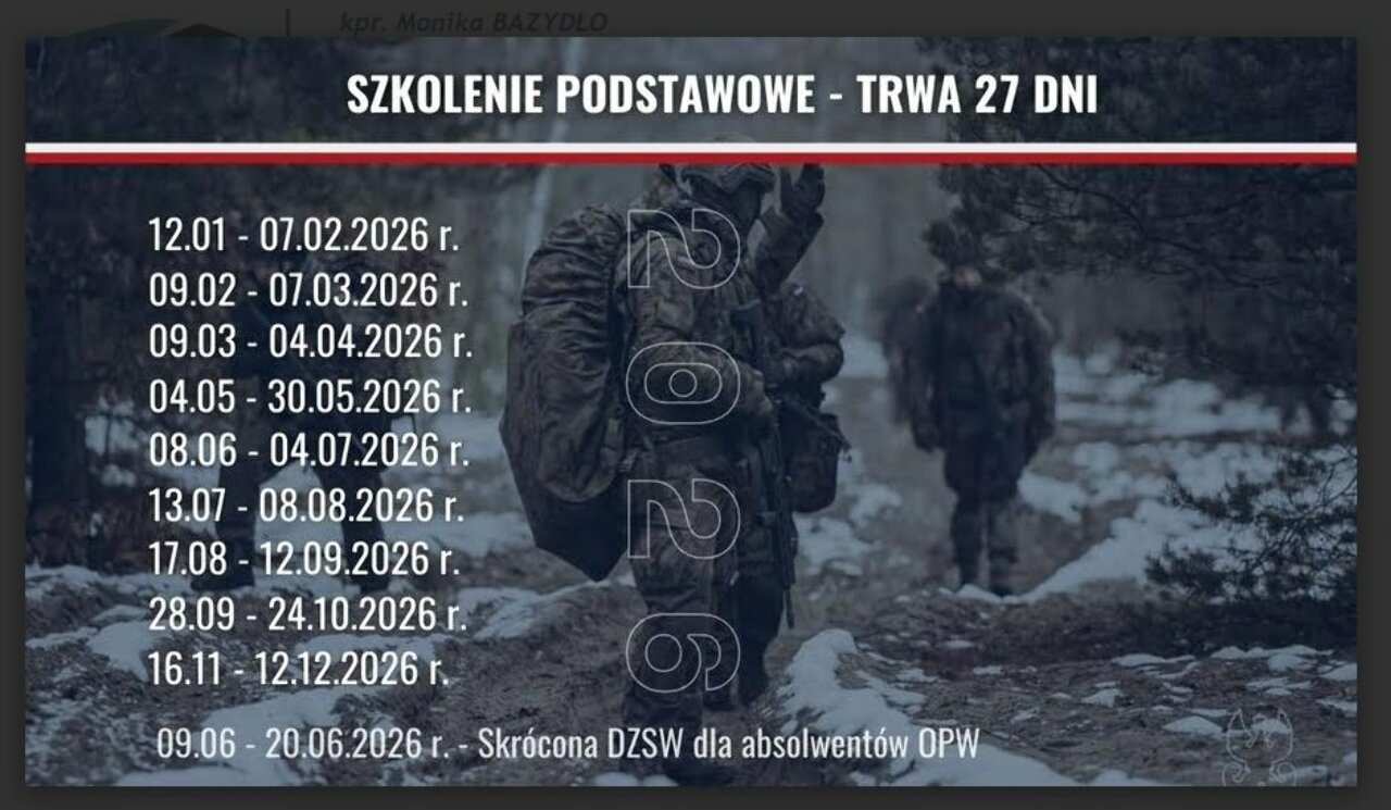 Szkolenie odbędzie się w terminie od 9 marca do 4 kwietnia 2026 r. w 2 Brygadzie Zmotoryzowanej Legionów – 2 batalionie zmotoryzowanym w Wojewodzinie.