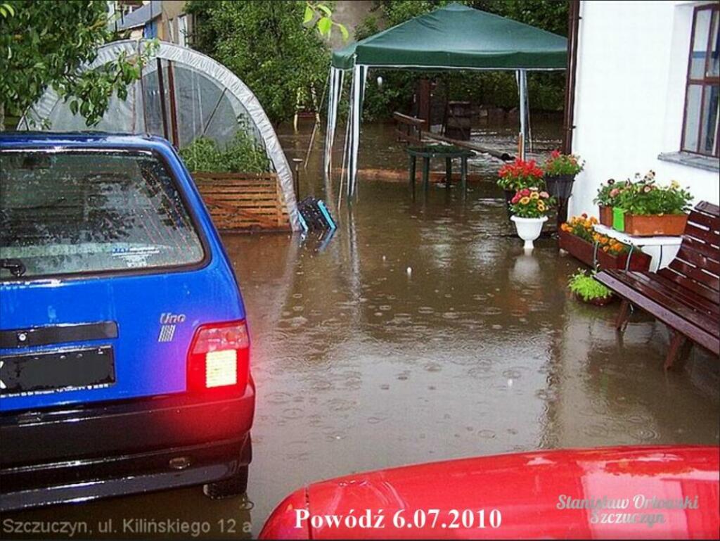 Ad. Szczuczyniak. Podtopień było wiele. W 2010 roku pierwsze, znikome podtopienie było w maju 2010, a drugie po opadach, które szerzej dokumentowałem i nazwałem je ?Powódź? było 6 lipca 2010 roku. To było za czasów ostatnich miesięcy urzędowania burmistrza Waldemara Szczesnego, którego kadencja wygasła po wyborach 21 listopada 2010. Startował w wyborach z ramienia partii PiS pod hasłem ?Szanując człowieka, budujemy przyszłość? i takim był rzeczywiście.