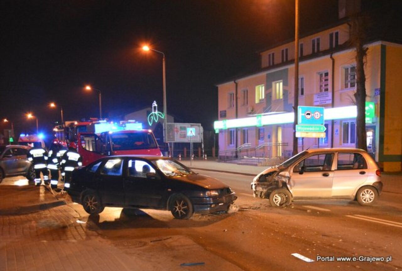 Na drodze krajowej nr 65 na ulicy Wojska Polskiego w Grajewie doszło do wypadku drogowego z udziałem matiza i seata. 20 - latek kierujący matizem zjechał na lewy pas ruchu i zderzył się czołowo z seatem. Trzy osoby przewieziono do szpitala.