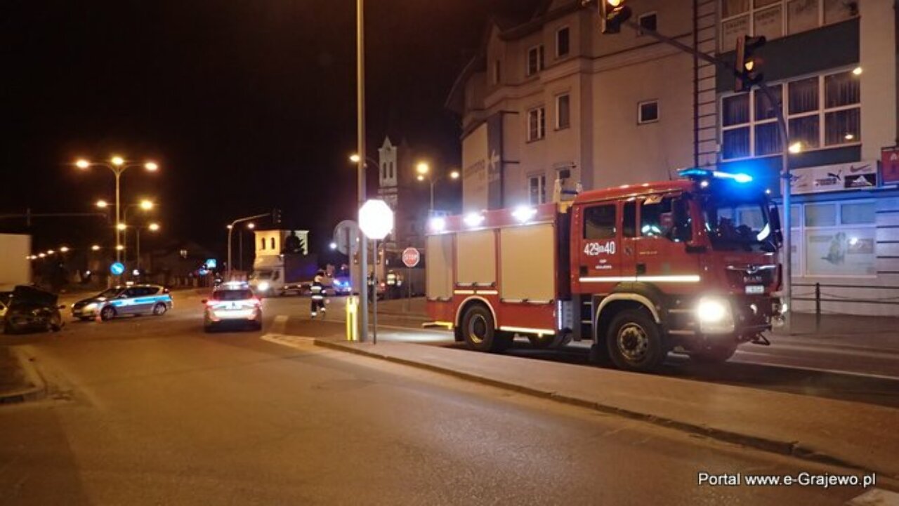 17 marca br. około godz. 1.30 na skrzyżowaniu ulic Ełckiej, Piłsudskiego i Kopernika (na światłach) w Grajewie doszło do zdarzenia drogowego.