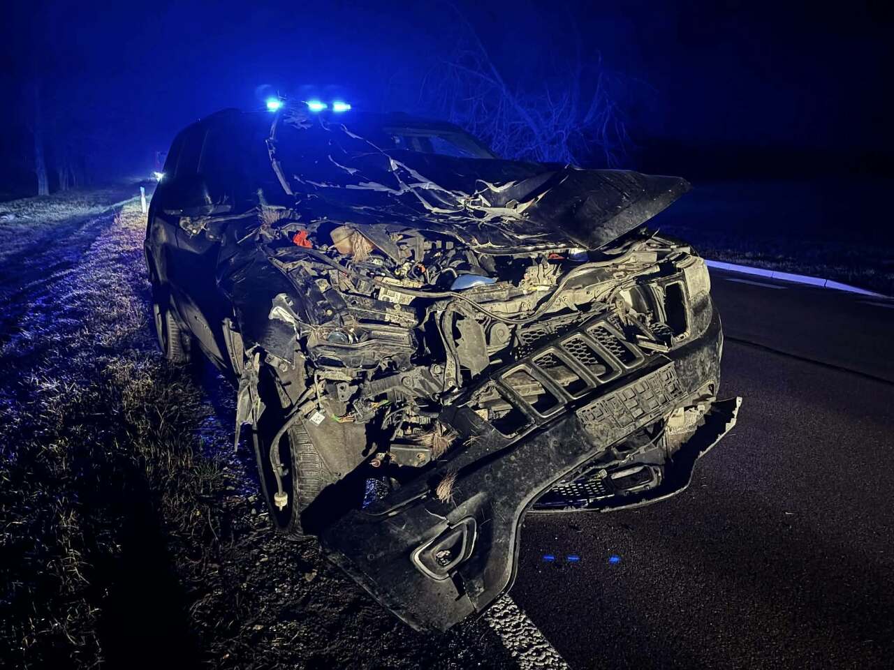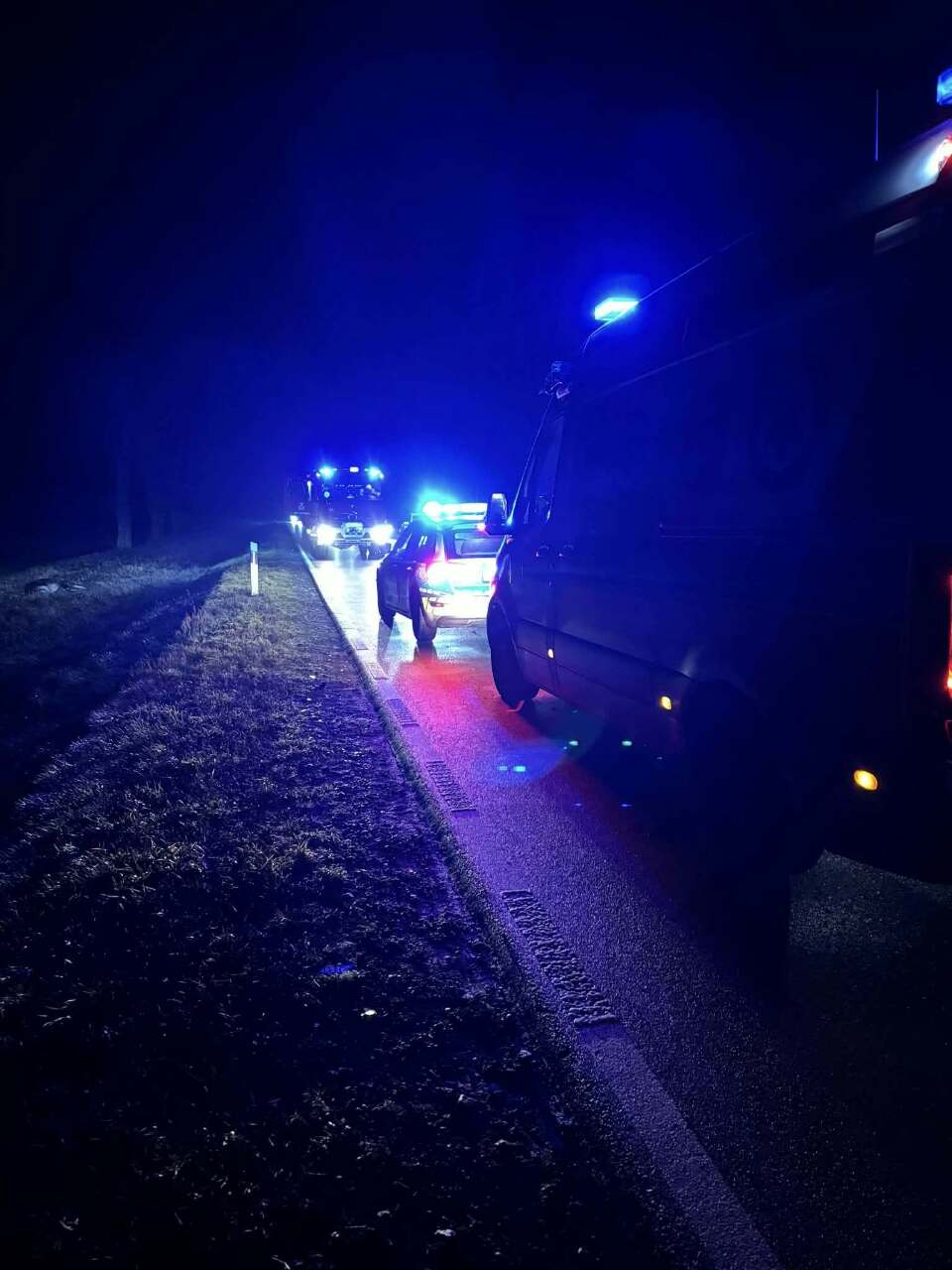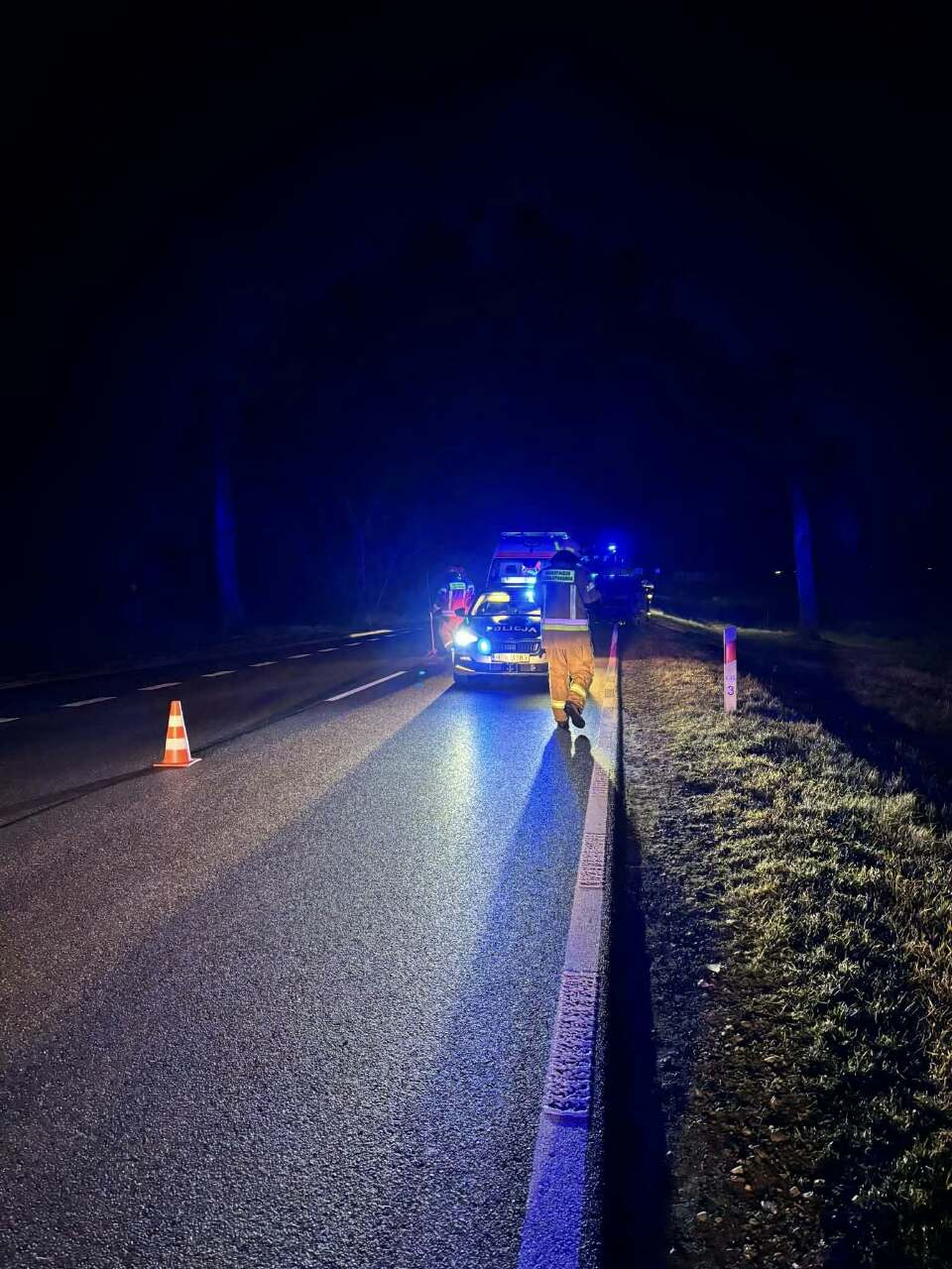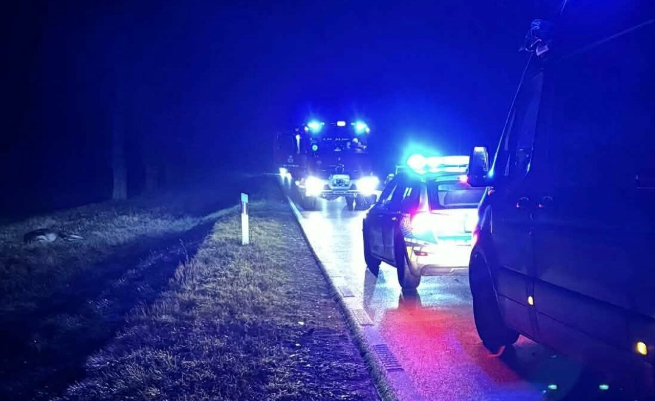 W środę 03.12.25 o godzinie 17:06 strażacy otrzymali zgłoszenie o zderzeniu samochodu osobowego z łosiem na DK65 na 135 kilometrze w kierunku Moniek.